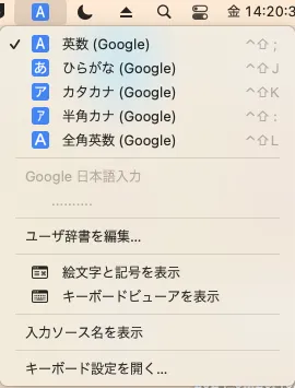 入力言語の詳細な設定は,画面右上の青いマークをクリックして表示される画面で行えます.