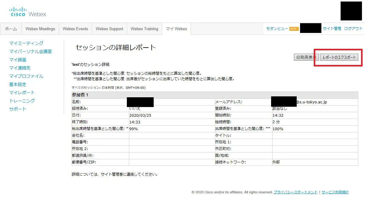 5. A list of participants’ attendance will be displayed. Click “Export Report” to download the displayed content as a CSV file.