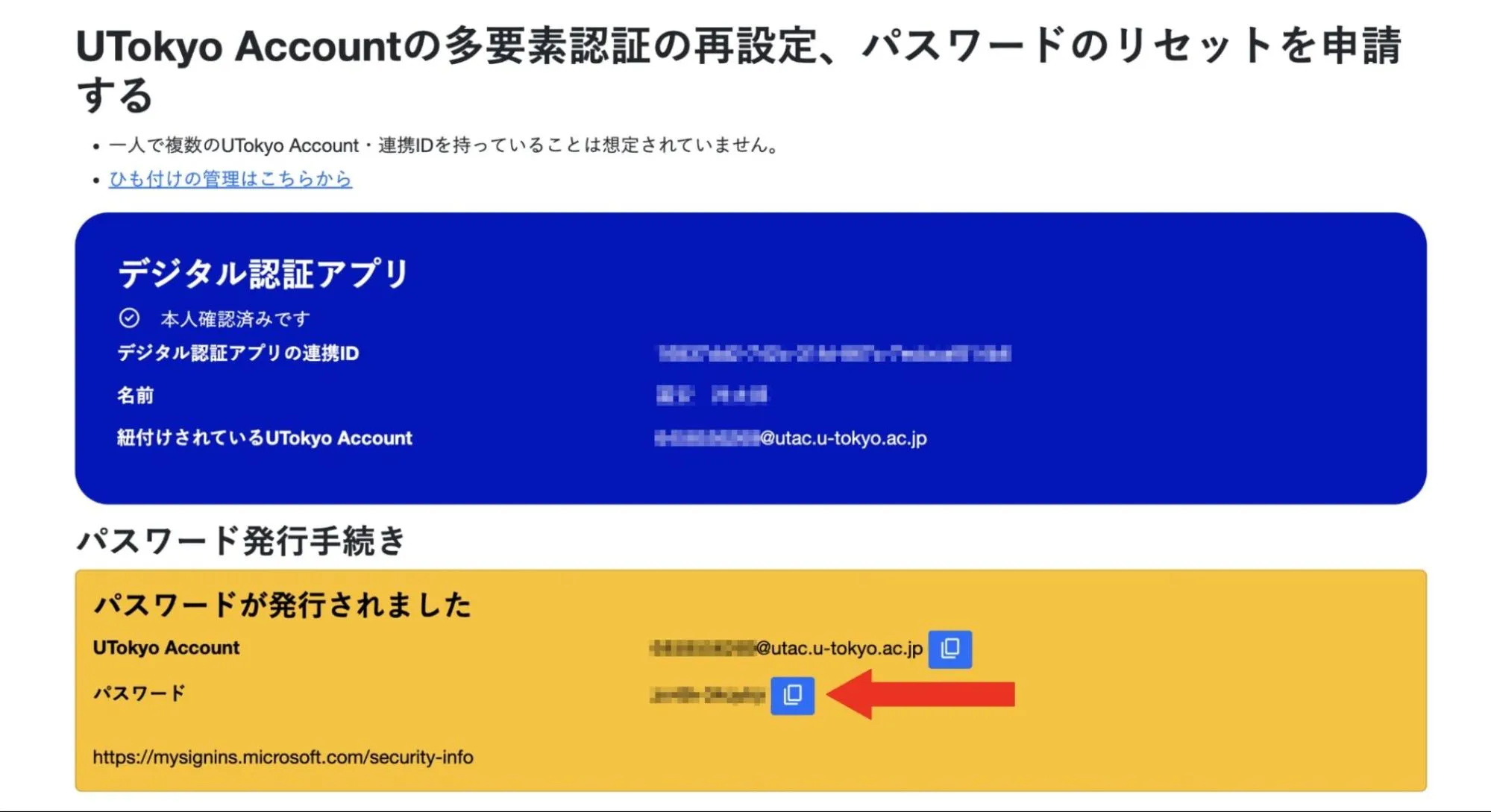 5. 一時アクセスパスが発行され,「パスワード」のところに表示されるので,コピーしてください.