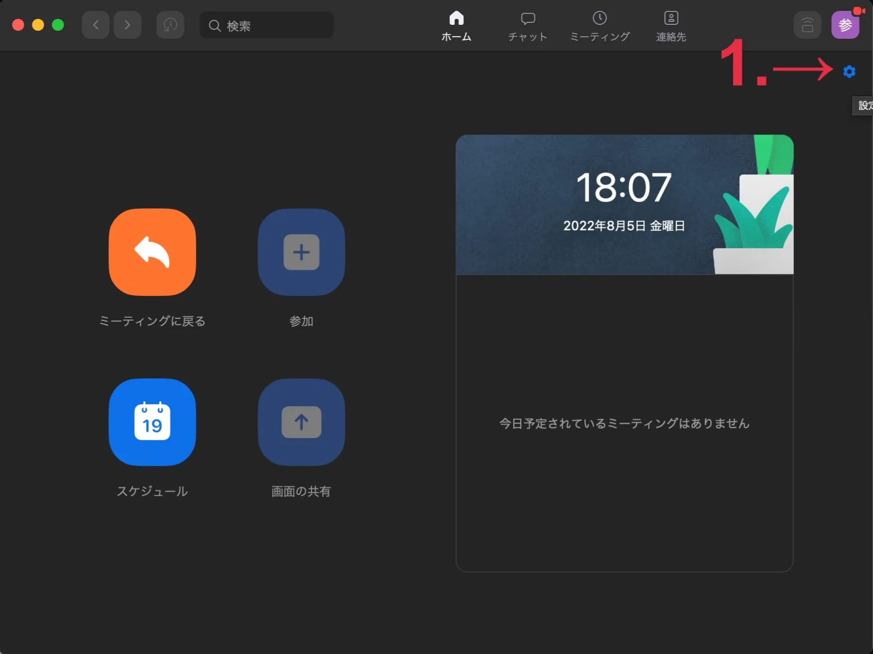 - 画面右上の歯車マーク(設定)を押してください.